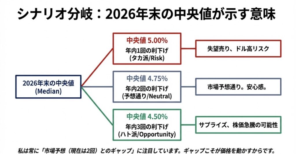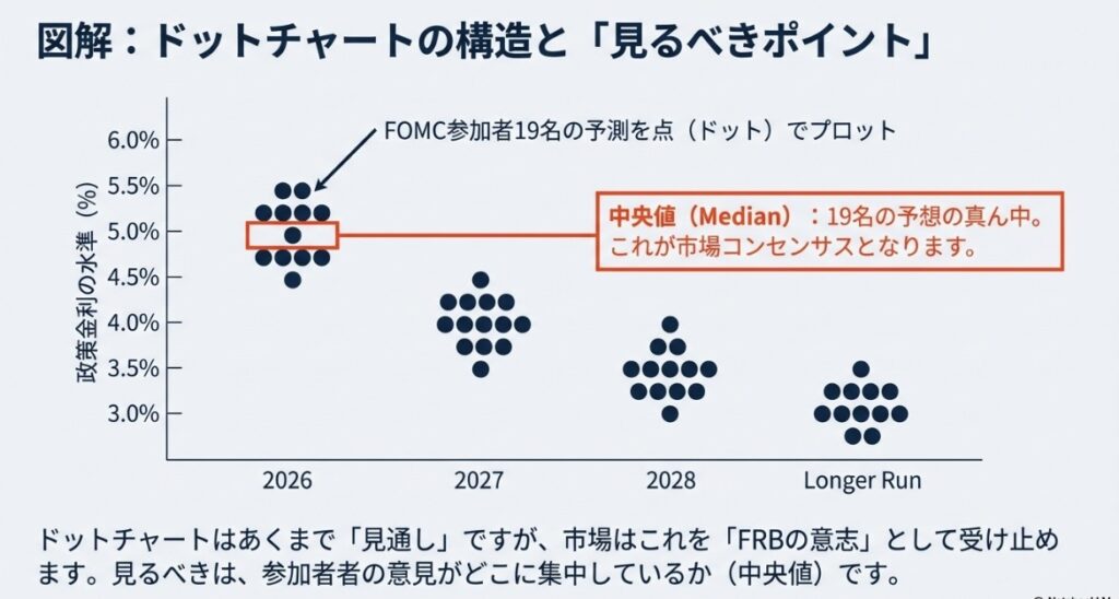 ✔ ドットチャートはあくまで「見通し」であり、実際の政策とはズレることも多い