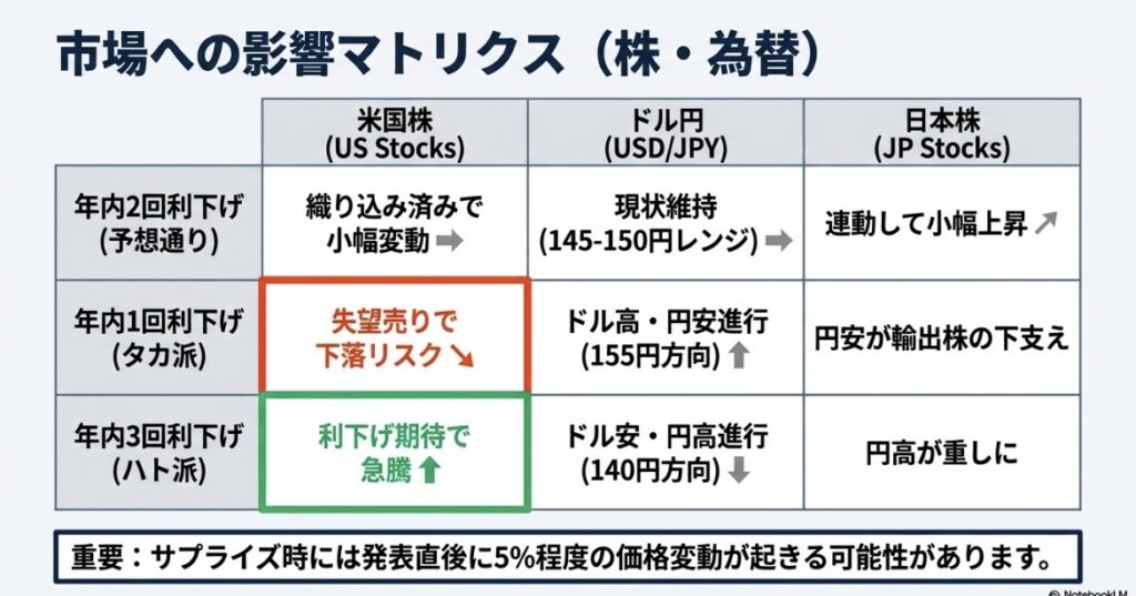 本記事は情報提供を目的としており、投資判断は自己責任でお願いします。FOMCの結果や市場の動きは予測できないため、余裕資金での投資を心がけましょう。