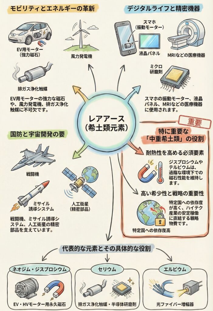 遠い国の鉱山の話ではない。レアアースの供給安定化は、私たちの家計に直結する3つの分野に波及する。